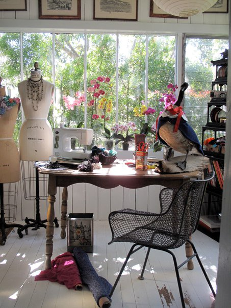 what a great space - reminds me of a screened in sun porch. Those dressforms are beauties too!